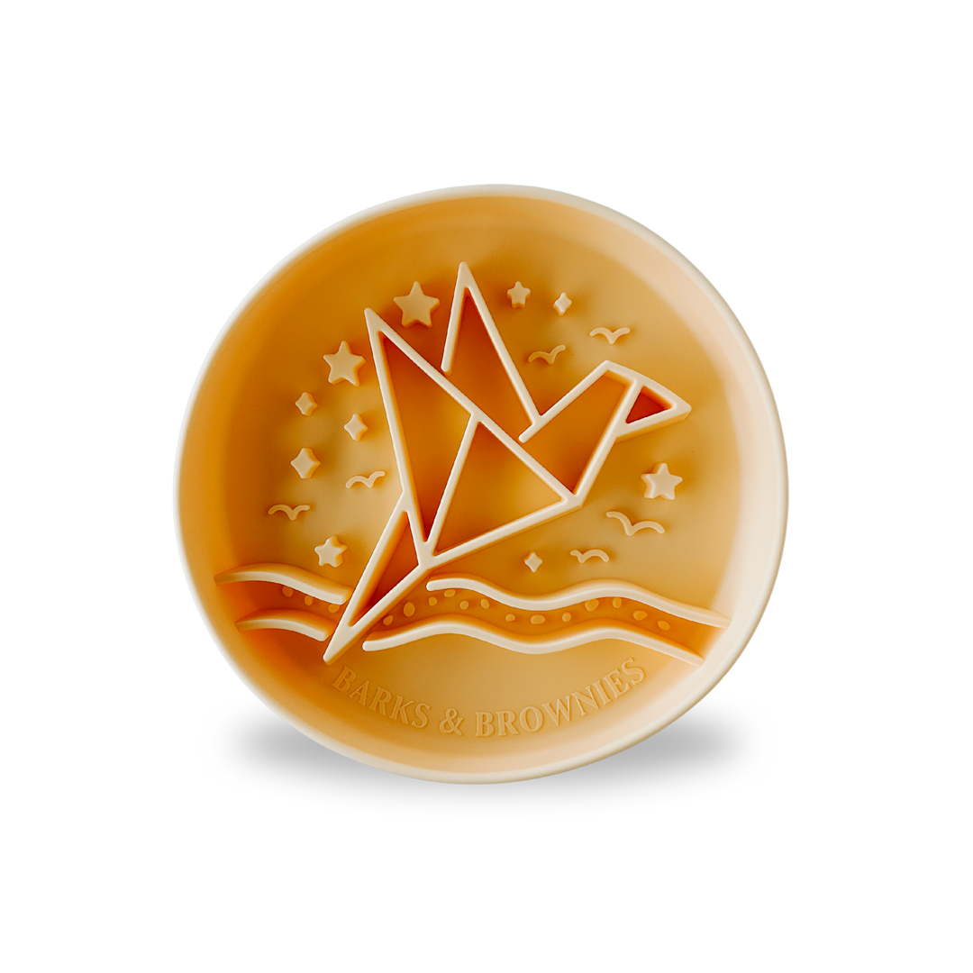 Our Origami slow feeder collection is inspired by the Japanese culture. And it also fits 3 cups of food for our bigger puppies !