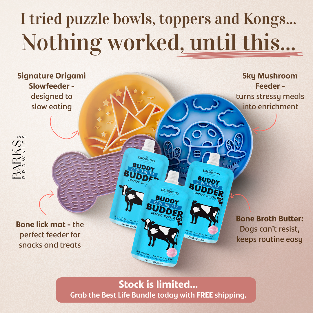 Best Life – Give your dog the ultimate enrichment routine with two of our most challenging slow feeders in different designs, so every mealtime feels fresh and fun. Add in a lick mat for calming moments or snack breaks, then top it all off with three all-natural peanut butter spreads made just for pups. It’s variety, challenge, and pure tail-wagging joy rolled into one bundle.