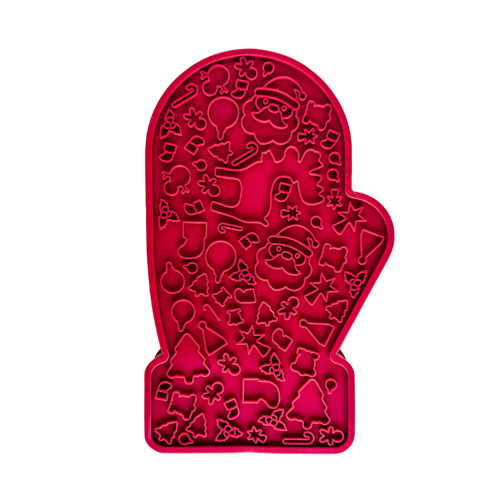 2 in 1 Christmas Mitten Slow Feeder + Lick Mat | Red